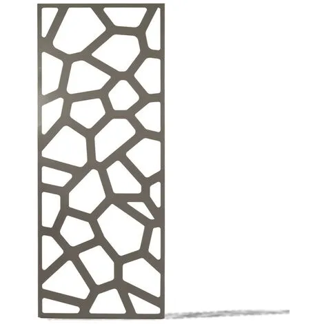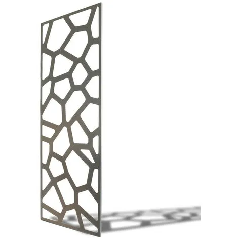 - Feuille de métal (épaisseur 0,6 mm) soudée dans un cadre rectangulaire (épaisseur 10 mm). Motifs ajourés, réalisés par découpe laser. Kits d’installation fournis, pour pose murale ou sur sol meuble.