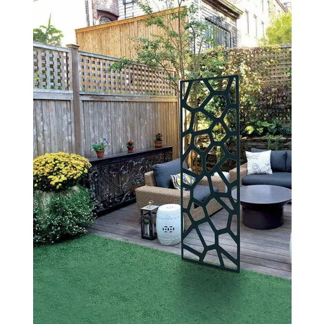 Le panneau en métal Déco Panel peut soit être planté en terre, soit être fixé à un mur. Selon le choix que vous faites, il pourra ensuite délimiter un espace ou accompagner la croissance des plantes grimpantes le long d’un mur par exemple. Les différentes formes composant ce panneau décoratif sont très esthétiques.